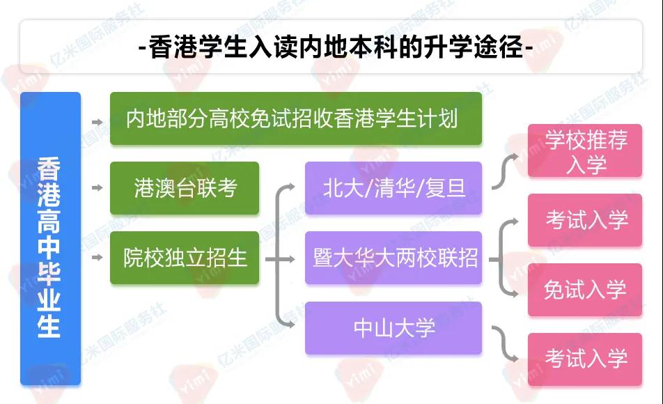 不過港籍孩子參加高考,除了要和1000多萬內地考生激烈競爭之外,也沒有什么其他優勢。作為港籍生,想要考取內地大學,有自己獨特的渠道: