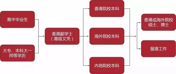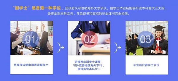 香港副學位課程,相當于香港本科的預備課程。學生在完成2年副學位的課程后,順利的入讀本校或其他院校的本科課程。同樣也是四年的時間就能夠獲得正規大學的學士學位學歷。
