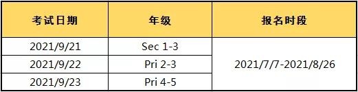 家長可在2021年7月7日至8月26日期間提交申請,當所有考位申請已滿后,就將關閉考試申請!!!