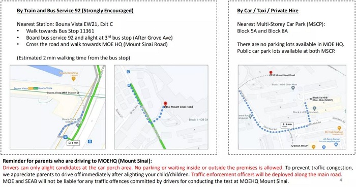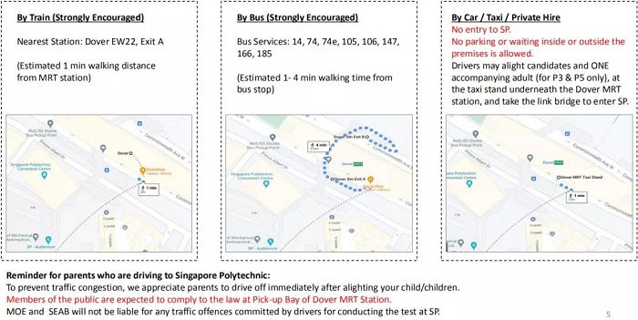 Tips:需要注意的是,今年的考試地點根據考試不同年級組分為兩個:MOE HQ(Mount Sinai Road)與 Singapore Polytechnic