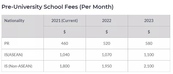 新加坡教育部指出,明、后兩年,本地永久居民的每月學費每年將調漲25新元到60新元不等,國際學生的學費漲幅則每年介于25新元到150新元不等。其中,來自非亞細安成員國的外籍學生的每月學費漲幅最大。小學生明、后兩年各漲50新元,后年達到875新元。