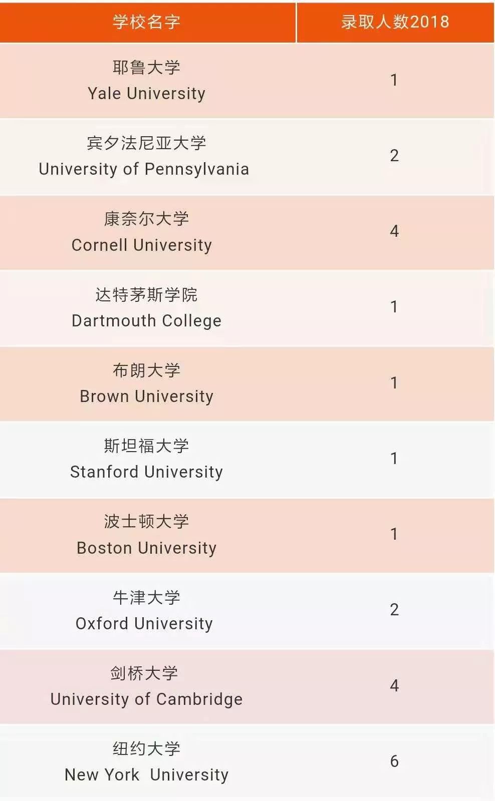 在2014至2016年之間共有49個學生進入常青藤學校和牛劍,其中36個常青藤,13個牛劍。