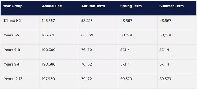 哈羅香港國際學校的收費大約每年由$145,557至$197,930(不包括書簿等雜費)。收費詳情參看下表:
