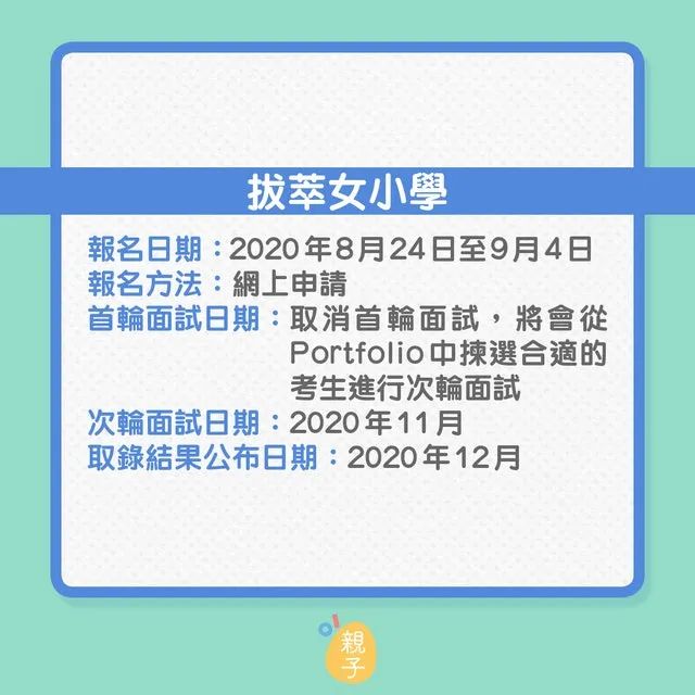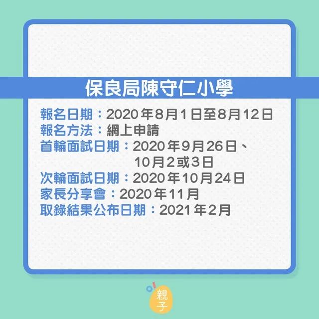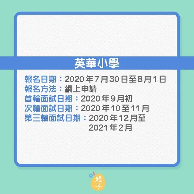 篇幅有限,下面列出9間熱門直私或私立小學(xué)的報(bào)名日期和面試內(nèi)容,家長(zhǎng)要緊記報(bào)名時(shí)間,以免錯(cuò)過(guò)。