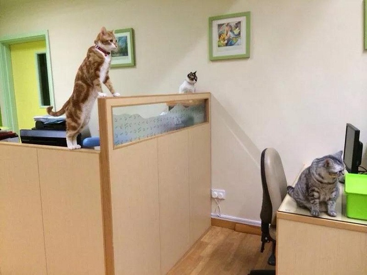 貓咪現住在校務處,辦公室內還特意把兩間房間改裝成為貓房,讓它們擁有自己的小天地。