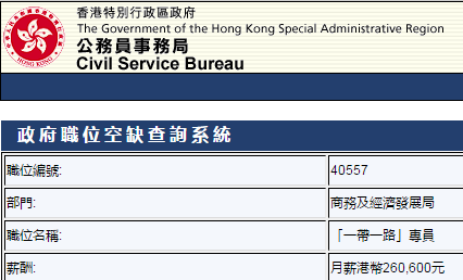 換言之,非永久性居民如果要應征公務員,必須要在香港住滿7年,得到永久性居民資格才可申請。當然,近年來這個限制也有放寬,8月17日香港商務及經濟發展局正式發布招聘信息,招募“一帶一路”專員,月薪高達港幣26萬余元。非香港永久居民亦可申請,能說流利普通話者會有優勢。