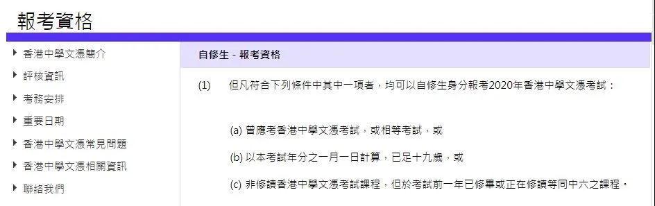 目前有兩種考生能夠報讀DSE考試,一種是學??忌硪环N是自修生。而根據香港教育局公布的條件來看,以自修生的身份報考DSE,只需要滿足以下一點即可,并不需要全部滿足。