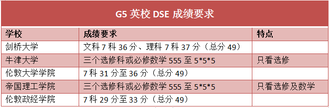 注意,雖然上圖顯示的是總分,但英校并不是看DSE總分!G5院校大多數(shù)要求都是主修4科及格或4分就夠,而最重要的是選修科目都要三科555至5*5*5!