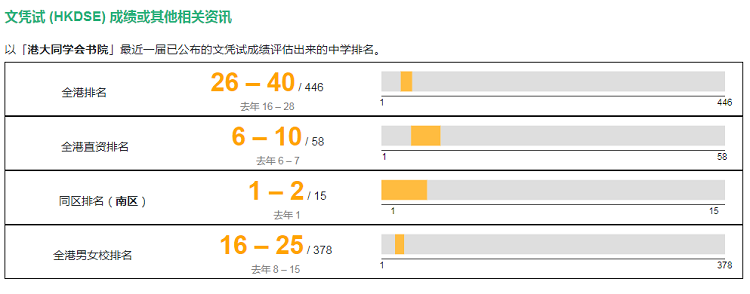 近年來港大同學會書院的文憑試成績十分出色,在全港中學排名中屬于Band 1A中學。