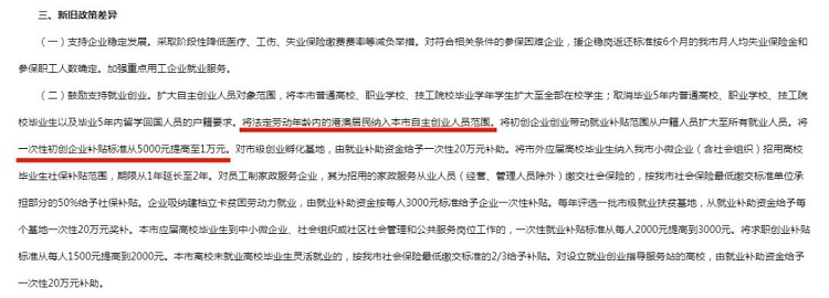 深圳政府新出臺的《深圳市進一步促進就業若干措施》,將法定勞動年齡內的港澳居民納入深圳自主創業人員范圍,這也意味著這些港澳居民在深圳自主創業,將享受深圳市相關扶持政策。