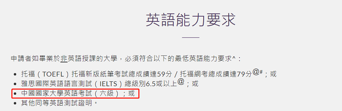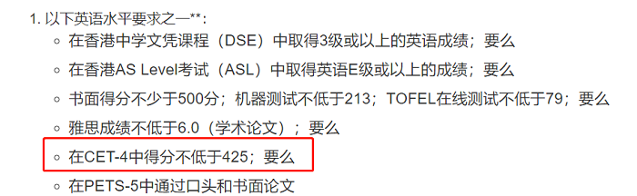 下面,億米君給大家整理了香港接受大學英語四六級成績申請的學校及專業,希望可以幫助大家: