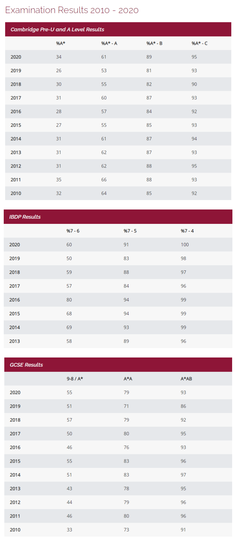 2020年畢業(yè)生進(jìn)入的學(xué)校:牛津大學(xué)(30),劍橋大學(xué)(13),達(dá)勒姆(11),愛丁堡(11),倫敦大學(xué)學(xué)院(10)……