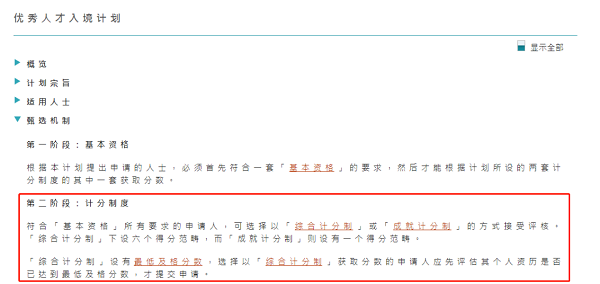 申請香港優(yōu)才計劃,除了要滿18周歲以上和良好中文或英文的書寫及口語能力外,還會通過兩套計分系統(tǒng),對申請人進行評估: