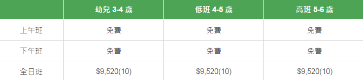 學校有參加「幼稚園教育計劃」,以下列出扣減政府資助后不同班別的全年學費和期數。