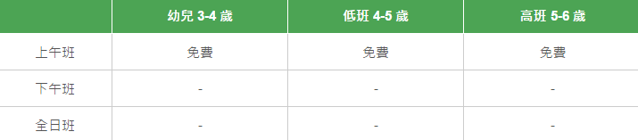 學校有參加「幼稚園教育計劃」,以下列出扣減政府資助后不同班別的全年學費和期數。