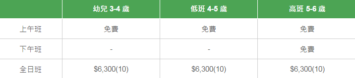 學校有參加「幼稚園教育計劃」,以下列出扣減政府資助后不同班別的全年學費和期數。