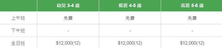 學(xué)校有參加「幼稚園教育計(jì)劃」,以下列出扣減政府資助后不同班別的全年學(xué)費(fèi)和期數(shù)。