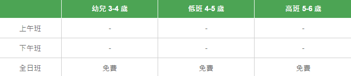 學校有參加「幼稚園教育計劃」,以下列出扣減政府資助后不同班別的全年學費和期數。