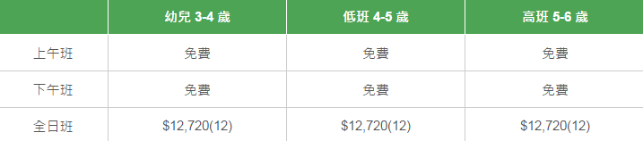 學校有參加「幼稚園教育計劃」,以下列出扣減政府資助后不同班別的全年學費和期數。