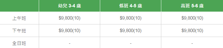 學校有參加「幼稚園教育計劃」,以下列出扣減政府資助后不同班別的全年學費和期數。