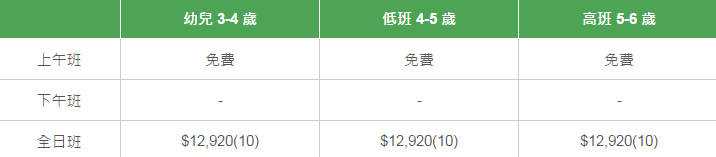 學校有參加「幼稚園教育計劃」,以下列出扣減政府資助后不同班別的全年學費和期數。