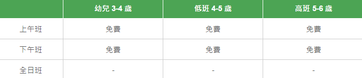 學校有參加「幼稚園教育計劃」,以下列出扣減政府資助后不同班別的全年學費和期數。