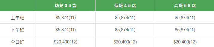 學校有參加「幼稚園教育計劃」,以下列出扣減政府資助后不同班別的全年學費和期數(shù)。