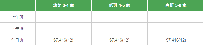 學校有參加「幼稚園教育計劃」,以下列出扣減政府資助后不同班別的全年學費和期數。