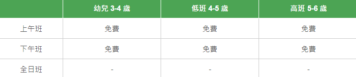 學校有參加「幼稚園教育計劃」,以下列出扣減政府資助后不同班別的全年學費和期數。