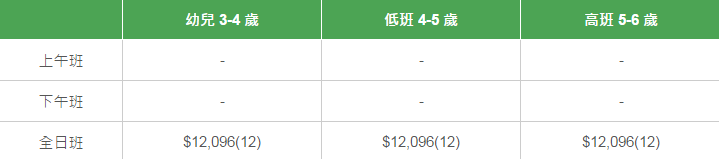 學校有參加「幼稚園教育計劃」,以下列出扣減政府資助后不同班別的全年學費和期數。
