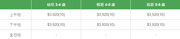 學校有參加「幼稚園教育計劃」,以下列出扣減政府資助后不同班別的全年學費和期數。