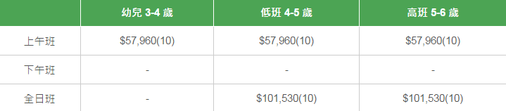 以下列出不同班別的全年學費和期數。