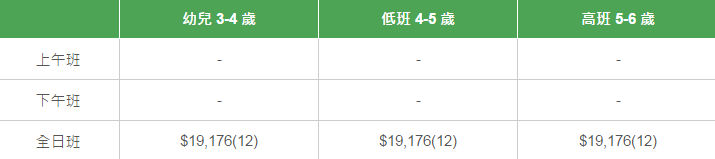 學校有參加「幼稚園教育計劃」,以下列出扣減政府資助后不同班別的全年學費和期數。