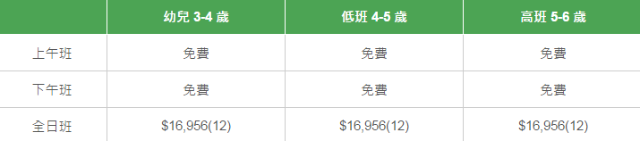 學校有參加「幼稚園教育計劃」,以下列出扣減政府資助后不同班別的全年學費和期數。