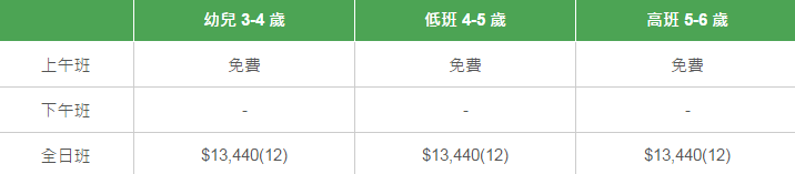 學校有參加「幼稚園教育計劃」,以下列出扣減政府資助后不同班別的全年學費和期數(shù)。