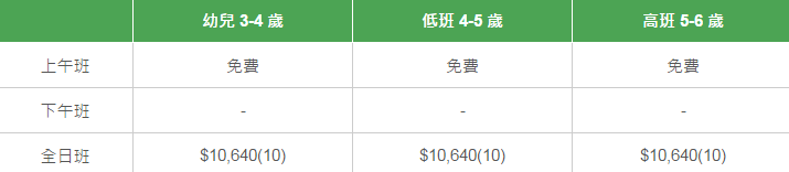 學校有參加「幼稚園教育計劃」,以下列出扣減政府資助后不同班別的全年學費和期數。