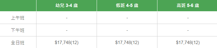 學校有參加「幼稚園教育計劃」,以下列出扣減政府資助后不同班別的全年學費和期數。