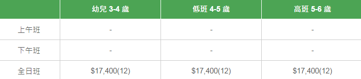 學校有參加「幼稚園教育計劃」,以下列出扣減政府資助后不同班別的全年學費和期數。