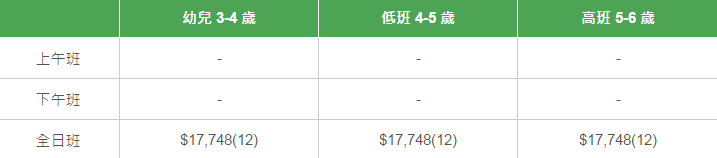 學校有參加「幼稚園教育計劃」,以下列出扣減政府資助后不同班別的全年學費和期數。