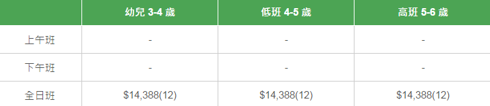 學校有參加「幼稚園教育計劃」,以下列出扣減政府資助后不同班別的全年學費和期數(shù)。
