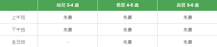 學校有參加「幼稚園教育計劃」,以下列出扣減政府資助后不同班別的全年學費和期數。