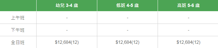 學校有參加「幼稚園教育計劃」,以下列出扣減政府資助后不同班別的全年學費和期數。