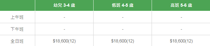 學校有參加「幼稚園教育計劃」,以下列出扣減政府資助后不同班別的全年學費和期數。