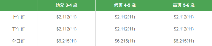 學(xué)校有參加「幼稚園教育計(jì)劃」,以下列出扣減政府資助后不同班別的全年學(xué)費(fèi)和期數(shù)。