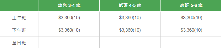 學校有參加「幼稚園教育計劃」,以下列出扣減政府資助后不同班別的全年學費和期數。